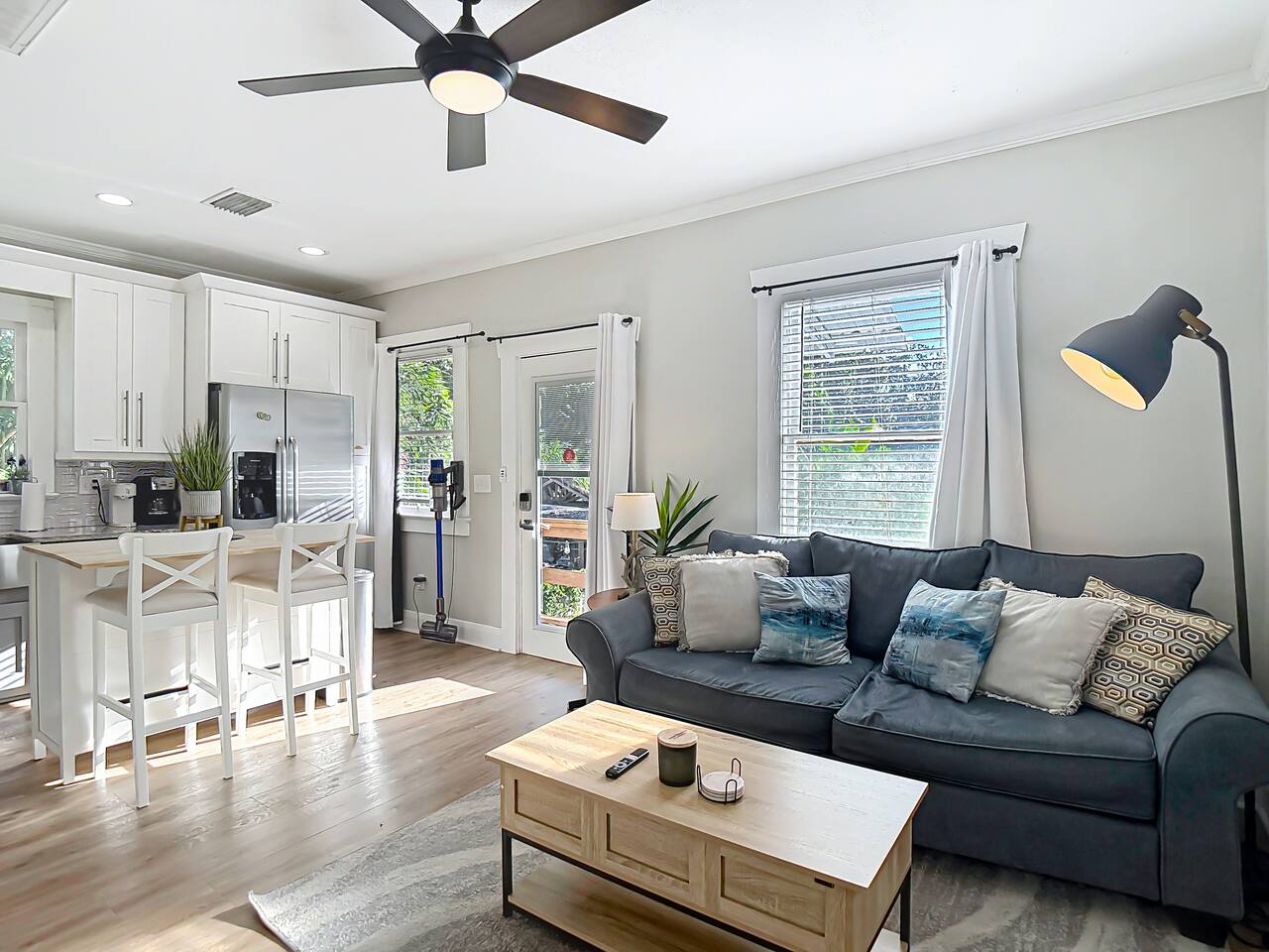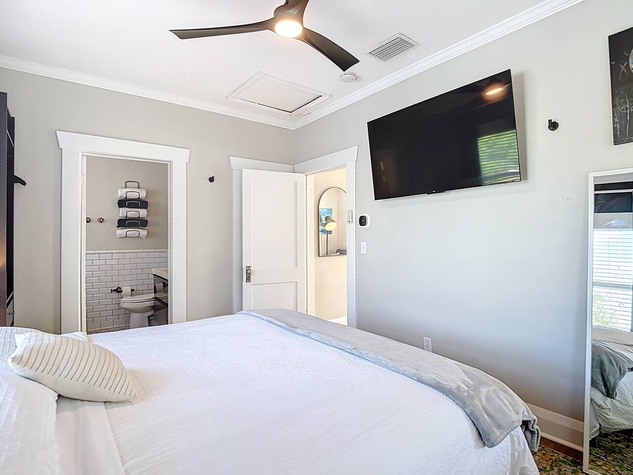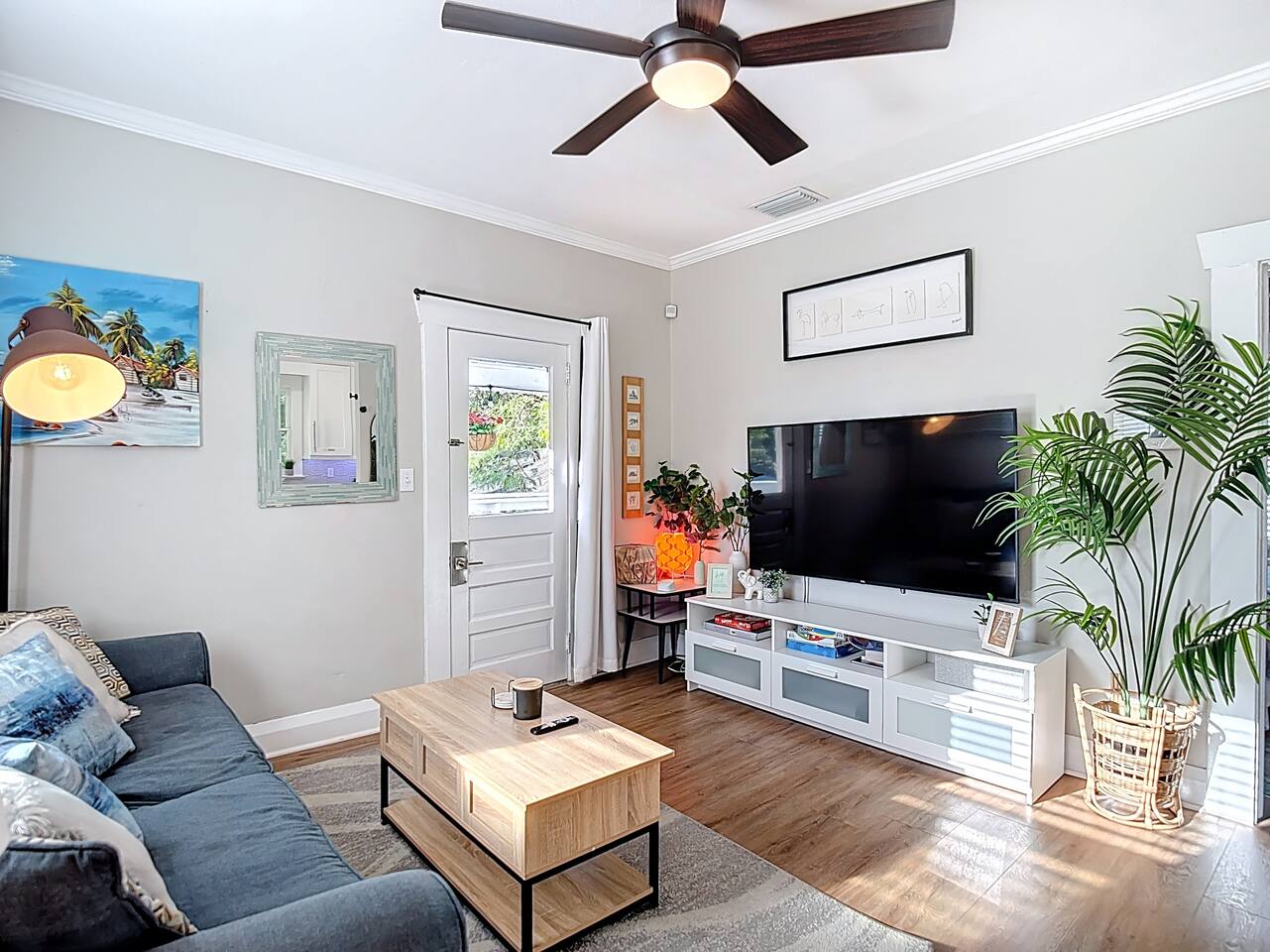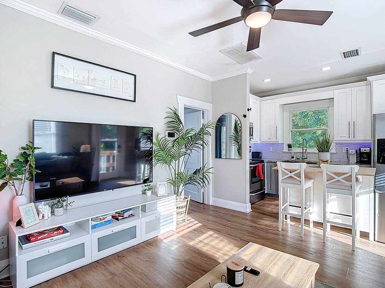 Take confidence in booking your valued vacation and family time with me, Tony, a multi-year superhost with a 0% cancellation rate and hundreds of glowing 5-star reviews. I guarantee a comfortable stay with zero of those pesky "chores" that you may find in other Airbnb's. This fully private one-bedroom one-bathroom apartment space is located on the second story of a 1920's Seminole Heights guest house loaded with modern day comfort and convenience. It is located in the private, safe, and serene rear-yard of the owners craftsman bungalow of the same vintage time-period. Offering a full kitchen, living room, balcony, king bedroom with walk-in closet and en-suite bathroom. The space is tastefully decorated, functional, and comfortable throughout. The kitchen is equipped with full-size fridge with in-door ice and water, oven, microwave, dishwasher, under-cabinet lighting, as well as all the basics you'll need to make a chef-inspired meal. A drip coffee machine and a French press are also available for coffee lovers. The living room has a queen sofa-sleeper and a 65" Smart TV with all the apps to stream your favorite shows (guest requires their own streaming service accounts). A pop-up coffee table also doubles as a work space or secondary dining area. Classic board games are also available for the family to enjoy. The private balcony is directly off the living room features a pair of comfy swivel chairs with bistro table plus outdoor sofa, perfect for a morning coffee, bird-watching, or just listening to the nearby bamboo and other trees swaying in the wind. The king bedroom suite is outfitted with a comfy king-size bed, 55" wall-mounted tv, side tables, a dresser, mirror and plenty of natural light throughout. The ensuite bathroom has an antique clawfoot tub with shower. All bathroom basics are provided, including shampoo, conditioner, towels, etc. Central air-conditioning and ceiling fans in each room keep you cool in the Florida sunshine. Located in eclectic and trendy Seminole Heights which has been voted as one of "Tampa's hottest neighborhoods on the rise." The neighborhood has undergone extensive revitalization and a community has formed of residents and business owners to make Seminole Heights hip, charming, and inviting. It’s a great place to live and visit, and attracts a diverse crowd of young professionals and families. There are no shortage of great restaurants, micro-brewery's and places to get an upscale cocktail at an affordable price. Many places to eat and drink are just a short walk away. Come visit Tampa's hottest growing neighborhood! You won't be disappointed.